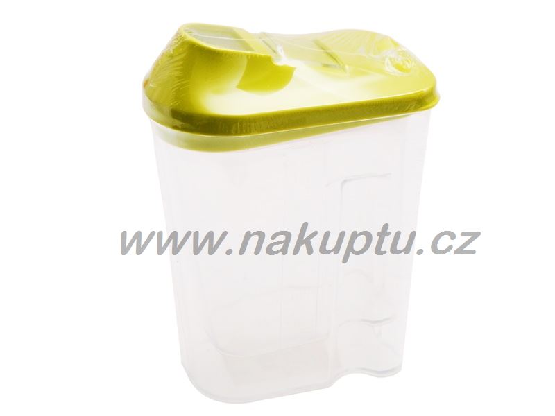Plastová dóza s odměrkou na uchování potravin ve spíži (převážně vhodná na mouku, cukr aj.). Ve víčku dózy praktický uzávěr, který jednoduše posunutím otevřete a zase utěsníte posunutím zpět. Dóza má také po bocích odměrku na kakao, sůl, cukr, rýži, mouku a vodu. Snadno tak uvidíte, jaký obsah umístěných pochutin v dóze ještě zbývá.