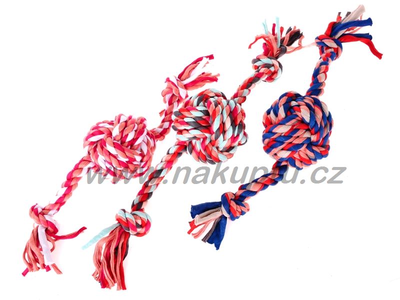 Bavlněná hračka pro psy – uprostřed obří uzel, na bocích dva menší uzlíky.