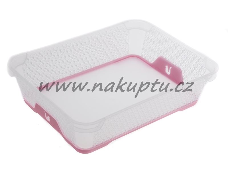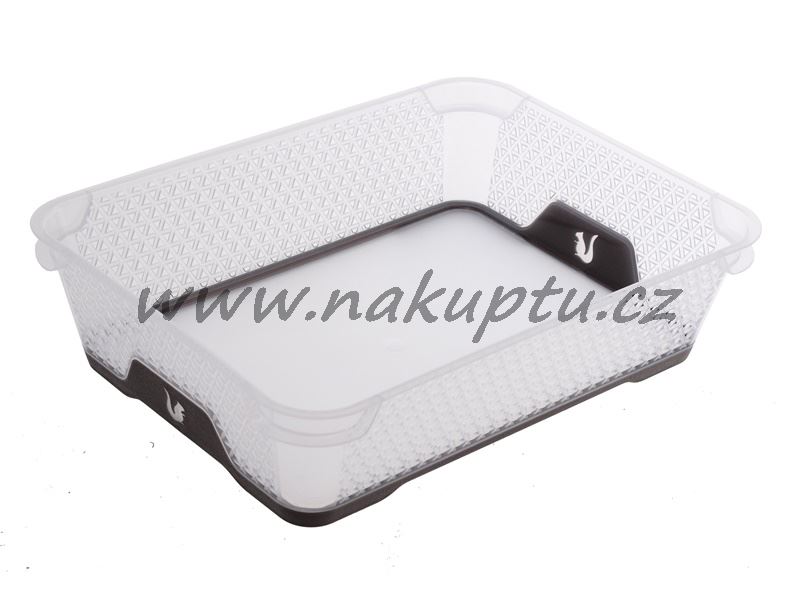 Plastový jednobarevný dekorační košík vhodný k uskladnění čehokoliv v domácnosti. Spodní barevná část je z protiskluzového materiálu.
