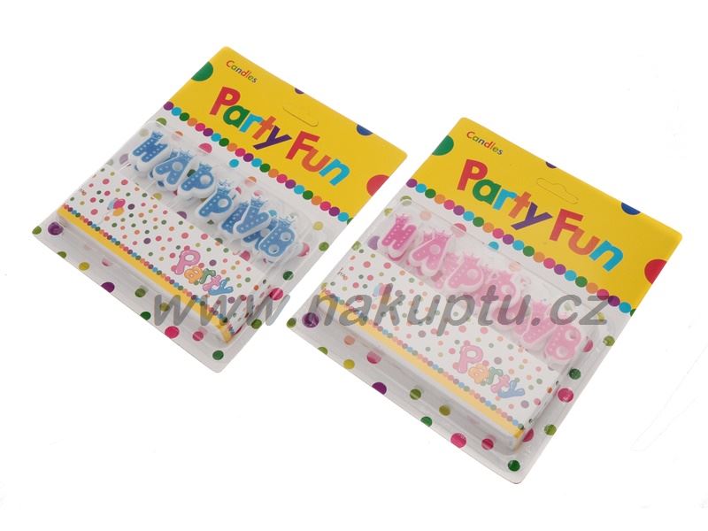 Balení obsahuje svíčky na dort v podobě nápisu HAPPY BIRTHDAY. Každá svíčka je jako jedno písmenko. Písmena jednoduše do dortu zabodnete pomocí tyčinky, která je součástí písmen. V nabídce výplň písmen v modré nebo růžové barvě pro kluky nebo pro holčičky.