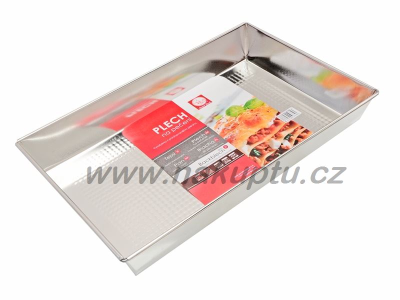 Pečící plech (forma) z pocínovaného plechu. Vhodný k použití jako plech na pečení např. buchty apod., tak k pečení základů na dorty aj. Není vhodný do myčky na nádobí a mikrovlnné trouby.