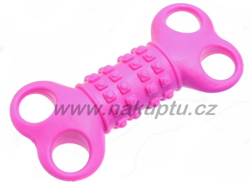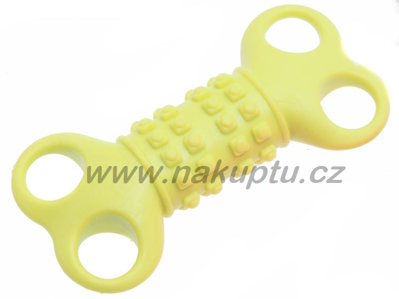 Gumová hračka ve tvaru “kosti” s otvory na boku. Není zcela tvrdá, takže je vhodná i pro starší pejsky, kteří díky problémům se zuby mají s tvrdou hračkou problém. Není ale ani ze zcela měkké gumy, tudíž ji i pejsci více hraví jen tak nezničí. Ve třech barevných variantách.