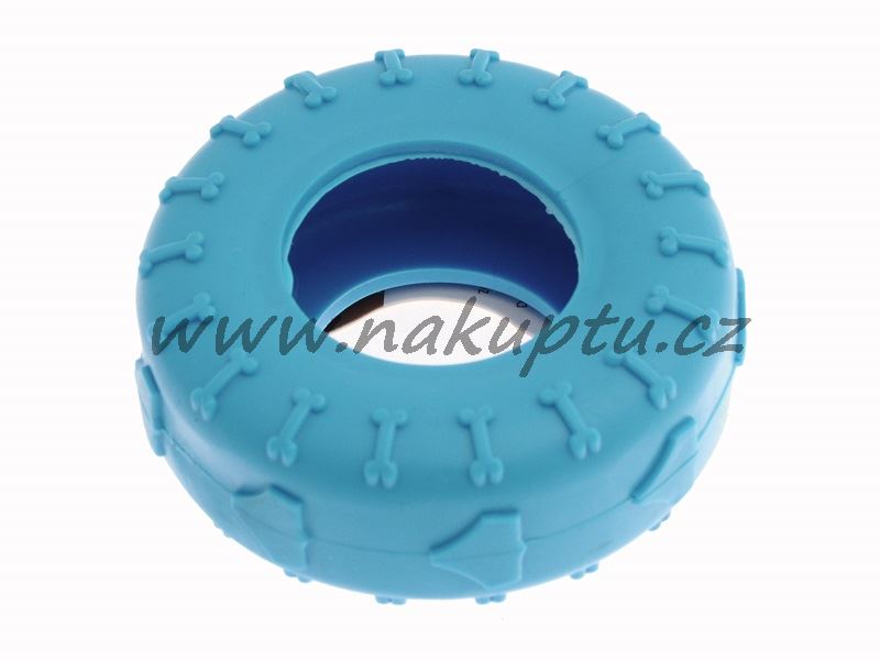 Gumová hračka pro psy ve tvaru malé pneumatiky s motivem kostiček . Kolečko je relativně tvrdé, takže jej ani akční pejsci jen tak nezničí 🙂