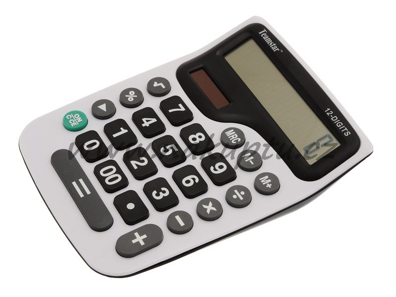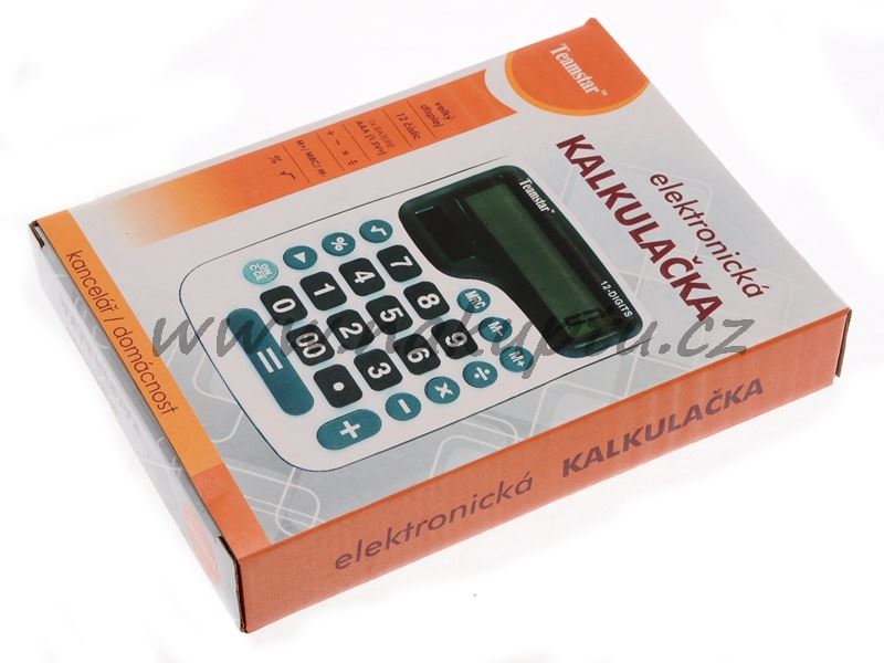 Elektronická kalkulačka je dnes součástí každé domácnosti. Široké využití jak doma, tak v kanceláři či na cestách. Klasické základní funkce (sčítání, odčítání, dělení, násobění), procenta, odmocnina, uložení do paměti. Kalkulačka se sama vypne v době nečinnosti díky senzoru světla. Baterie 1xAAA není součástí balení