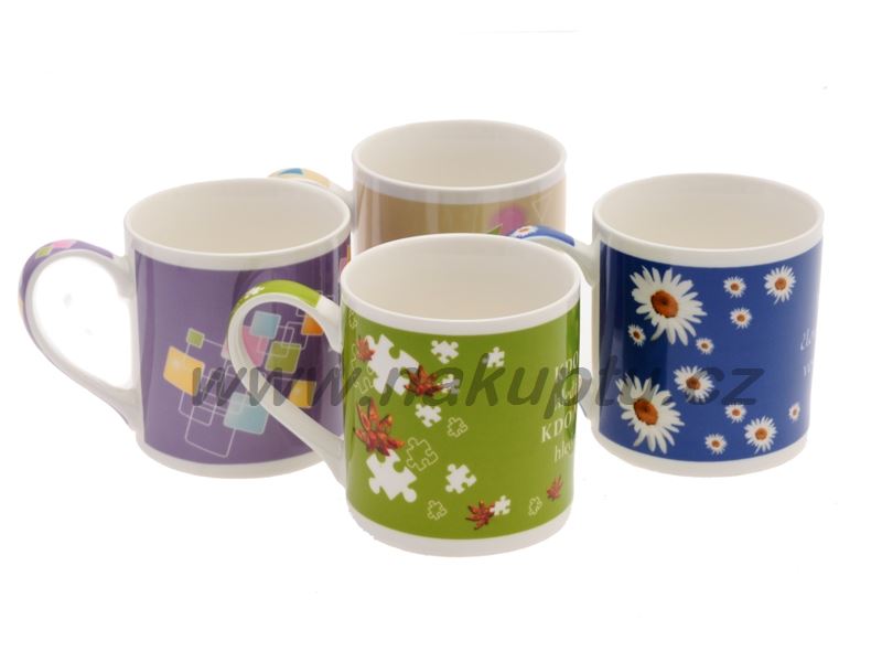 Chytrý hrneček “Veselému člověku připadá veselý celý svět” v modré barvě s kopretinami, vhodný jako dárek pro kohokoliv, koho chceme “poučit či potěšit” 🙂