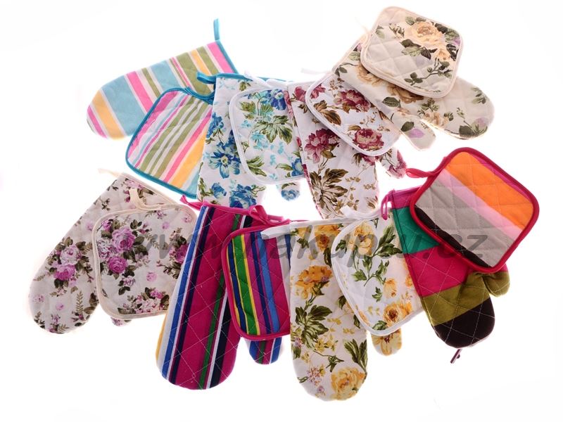 Praktický pomocník, který nechybí v žádné domácnosti. Set chňapek odolných proti teplu vhodné na uchycení horkých hrnců, talířů, plechů apod. Set obsahuje 2 ks, klasickou chňapku a čtvercovou chňapku, kterou lze použít také jako podložku pod horké nádobí. Nabízena u nás v šesti barevných variantách – květiny, proužky aj. (na stránce hledejte pod číslem 2096746).