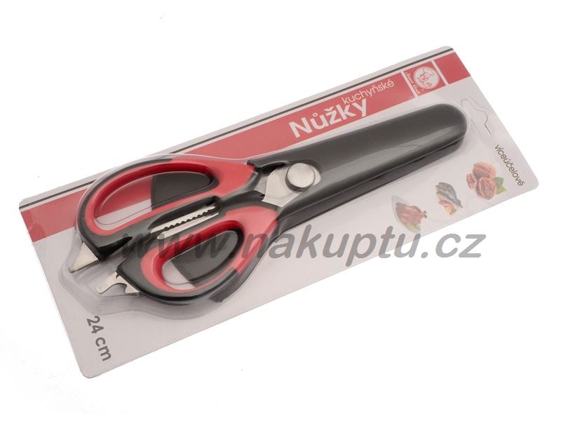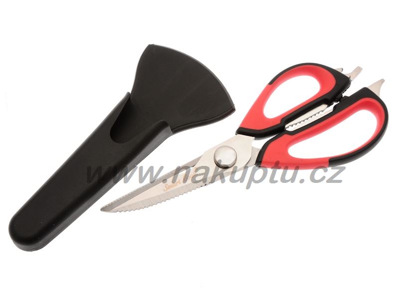 Víceúčelové kuchyňské nůžky poslouží v kuchyni jak na porcování drůbeže či ryb, tak například na louskání ořechů, nebo jako otvírák. Dodávány v praktickém plastovém pouzdře, které lze přišroubovat na zeď či linku, nebo jej díky magnetu na zadní straně snadno uchytíte například na magnetickou lištu. Nůžky z něj snadno vyndáte a po použití opět snadno zasunete zpět.