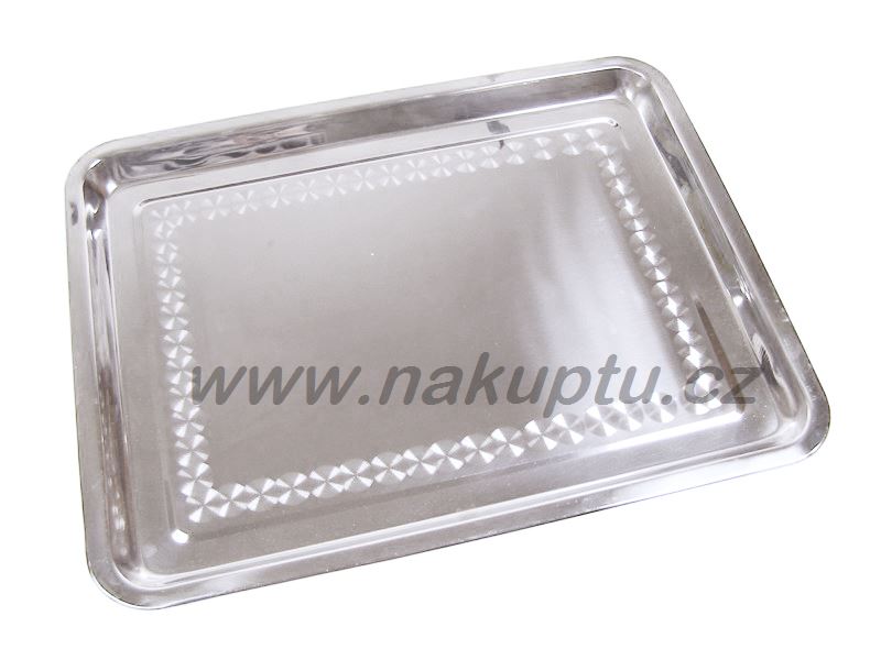 Obdelníkový nerezový tác s vyvýšeným okrajem vhodný na hygienické servírování nejrůznějších pochutin. Výborný pomocník například na servírování chlebíčků, přenášení více nápojů nebo servírování jídel na talíři apod.