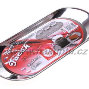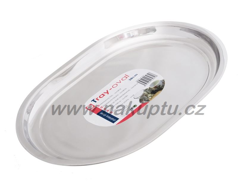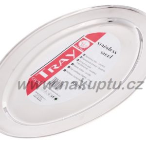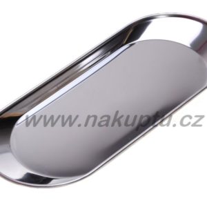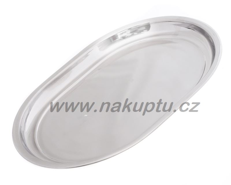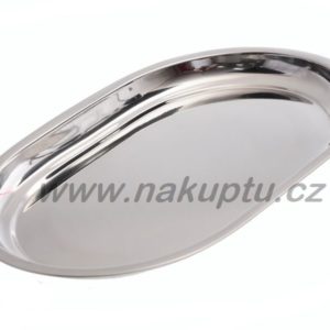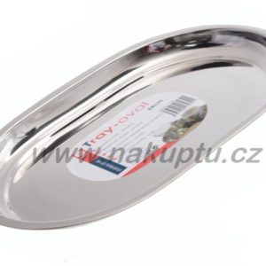 Oválný nerezový tác s vyvýšeným okrajem vhodný na hygienické servírování nejrůznějších pochutin. Výborný pomocník například na servírování chlebíčků aj.