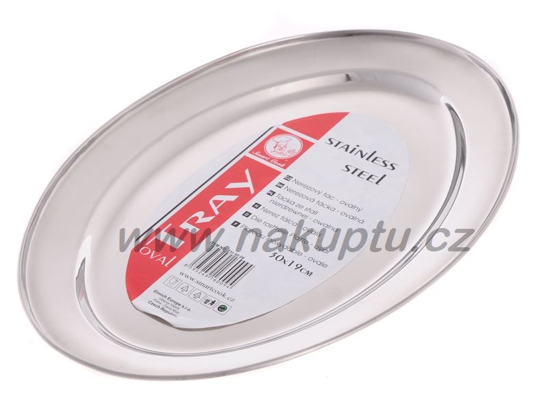 Oválný nerezový tácek s vyvýšeným okrajem vhodný na hygienické servírování nejrůznějších pochutin. Výborný pomocník například na servírování chlebíčků aj.