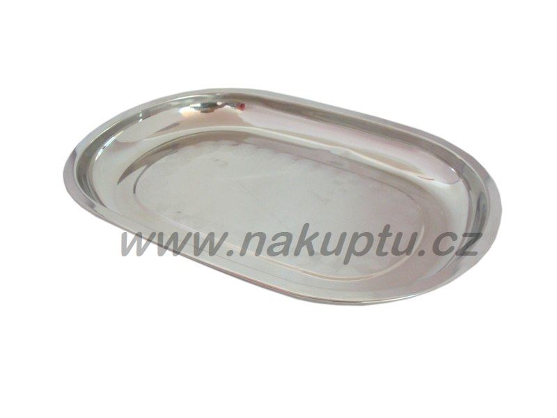 Oválný nerezový tác s vyvýšeným okrajem vhodný na hygienické servírování nejrůznějších pochutin. Výborný pomocník například na servírování chlebíčků aj.