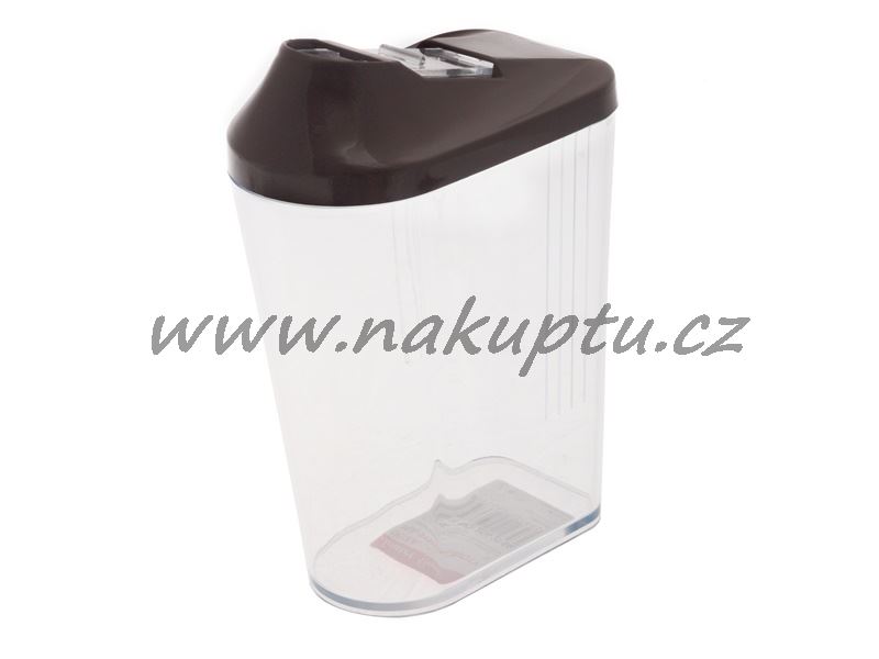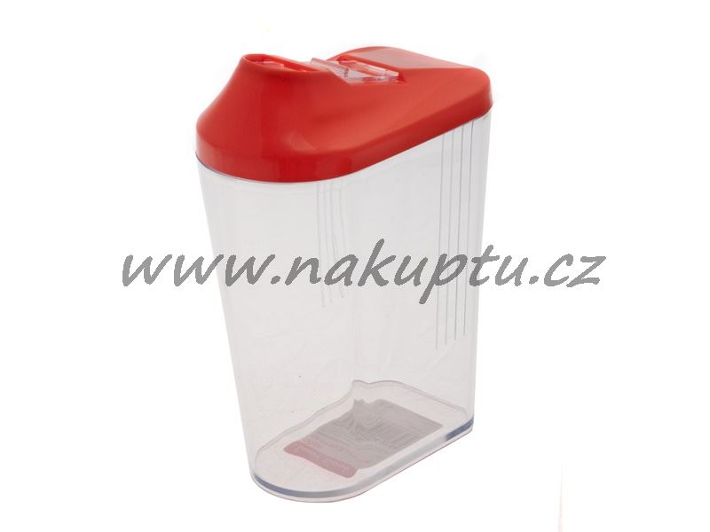 Plastová dóza na uchování potravin ve spíži (převážně vhodná na mouku, cukr aj.). Ve víčku dózy praktický uzávěr, který lze posunout do boku a vysypat potraviny z dózy a opět posunutím uzavřít.