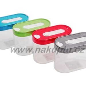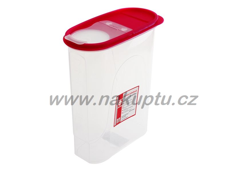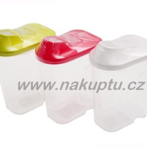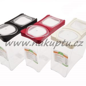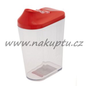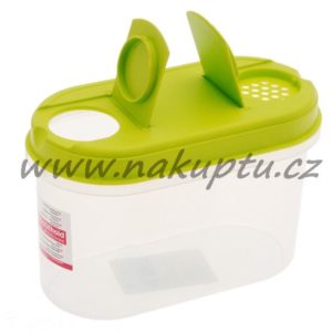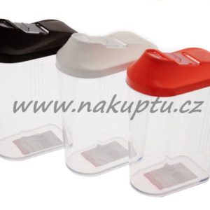 Plastová dóza s odměrkou na uchování potravin ve spíži (převážně vhodná na mouku, cukr aj.). Ve víčku dózy praktický plastový uzávěr, který jednoduše odklopíte a po odsypání potřebného množství zase zaklapnete. Dóza má také po bocích odměrku v mililitrech. Snadno tak uvidíte, jaký obsah umístěných pochutin v dóze ještě zbývá.