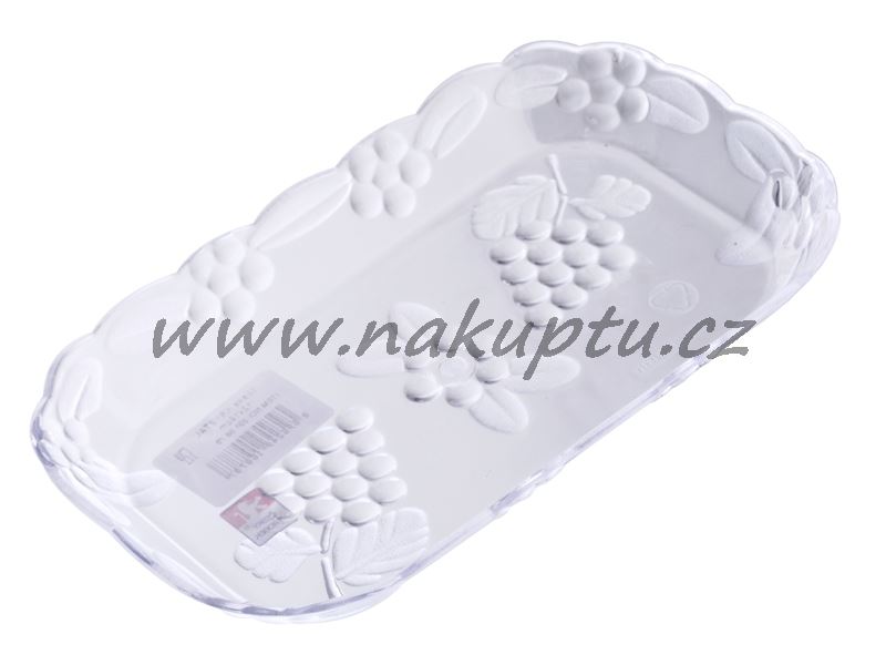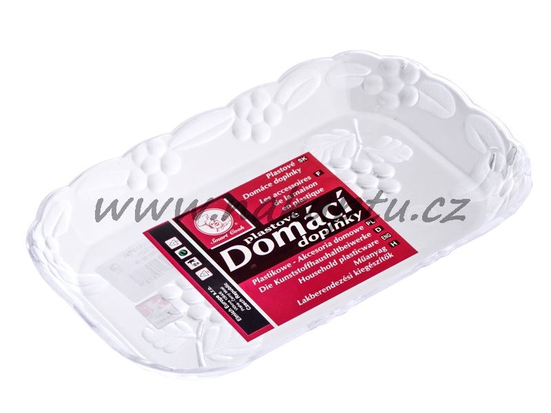 Obdélníkový plastový tácek s pozvolně vyvýšeným okrajem vhodný na hygienické servírování nejrůznějších pochutin (oříšků, brambůrků, nebo například chlebíčků).