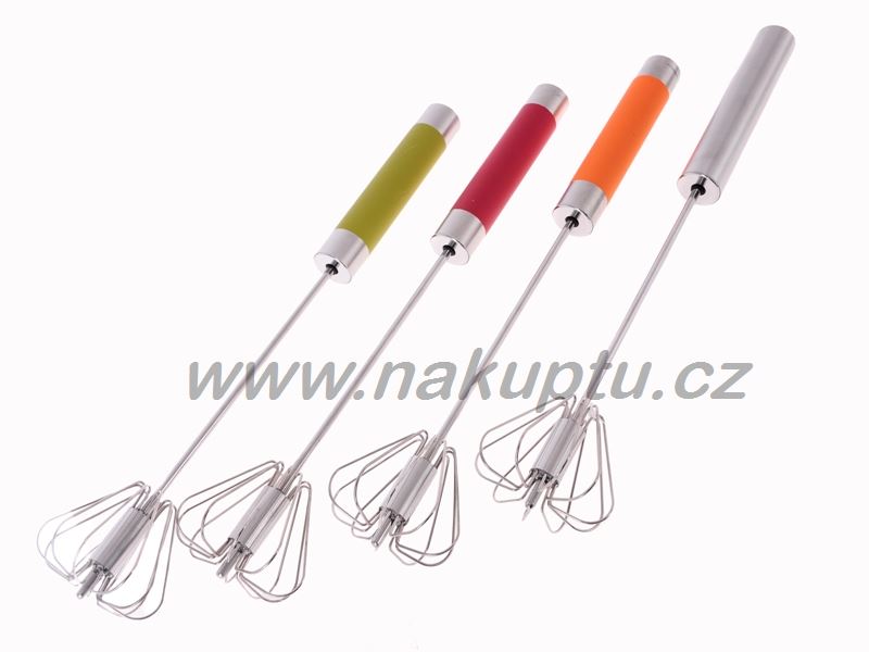 Rotační šlehací metla – pohybem “nahoru a dolů” se snadno metla sama roztočí a vy ušleháte bílky, nebo šlehačku aj. Díky malému průměru hlavice můžete snadno šlehat i v úzké nádobě.
