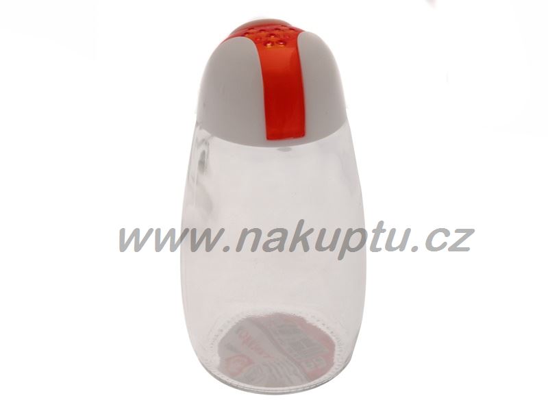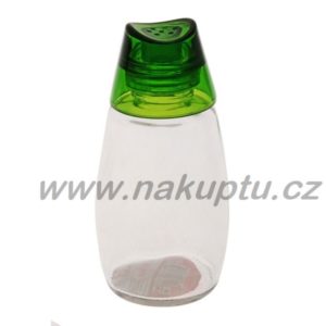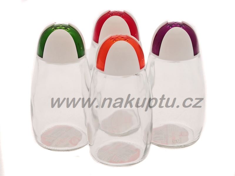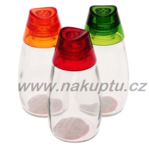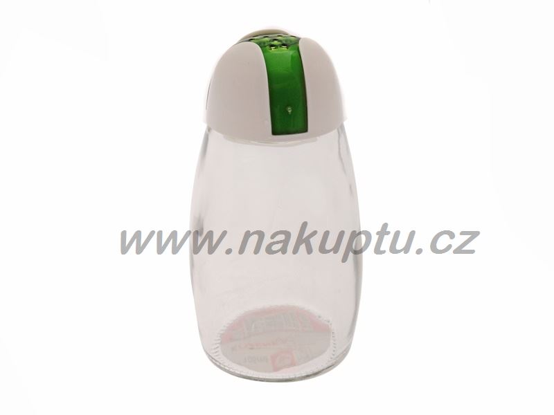 Skleněná kořenka s plastovým víčkem vhodná na uchování a dávkování koření, soli aj.