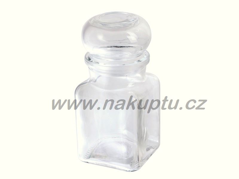 Skleněná kořenka vhodná na uchování koření aj. Opatřena víčkem s těsnící gumičkou, aby koření neztratilo svou přirozenou vůni a chuť.
