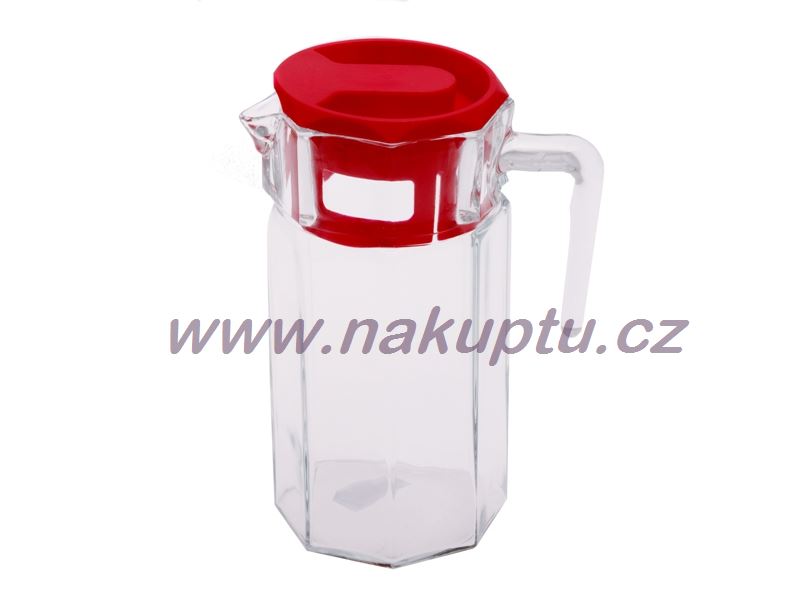 Bytelný skleněný džbán s plastovým víčkem je vhodný zejména na studené nápoje či šťávy.