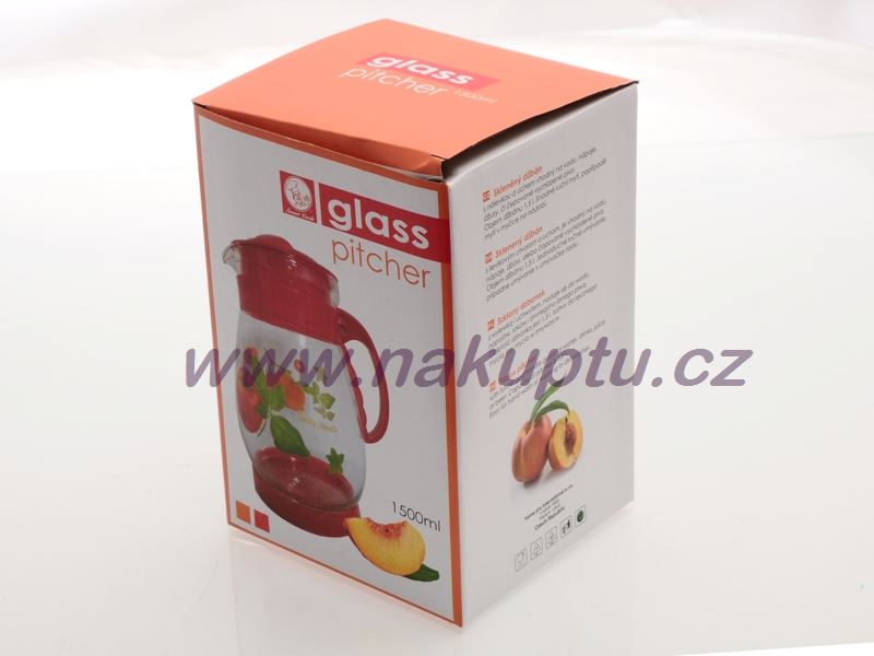 Skleněný džbán s plastovým úchytem je vhodný zejména na studené nápoje či šťávy.